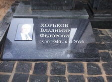 Мы изготовили небольшую плиту из чёрного гранита, на её поверхность прикрепили фотокерамику с изображением покойного.
