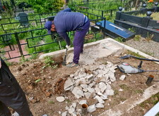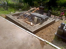 Укрываем место захоронения геотекстилем и приступаем к сборке и установке памятников.