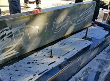 Переходим к созданию надписи. Вырубаем её на граните, затем покрывает акриловой краской. Такой вариант является отличной альтернативой покрытию сусальным золотом, который, к тому же, обходится клиенту значительно дешевле.